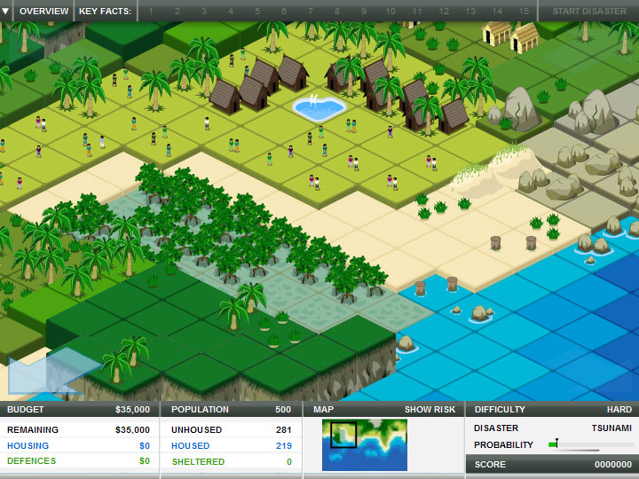 Similar to the gameplay of ‘SimCity’, players in ‘Stop Disasters!’ must develop and upgrade tiles to effect change. However, instead of creating an economically-thriving city, players are responsible for protecting their community from one of 5 natural disasters: a tsunami in a coastal village of southeast Asia, a hurricane on a Caribbean island, a wildfire in the arid plains of central Australia, an earthquake in the eastern Mediterranean, and a flood in a European valley. In each of these scenarios, players must develop sufficient housing, educate the community about evacuation plans, and protect vital infrastructure. Oh, and did I mention that players have a limited amount of money to accomplish all these tasks and only 10-20 minutes before disaster strikes? Success will come from proper strategy and planning.