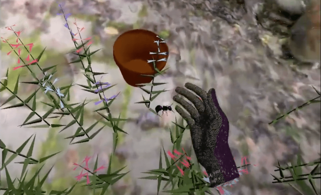 Similarly, Little has expansions in mind for his submission Bee Cycle stating, “there’s something to the snapping your fingers mechanic to planting seeds. I also want to make it even more immersive like making a much better photogrammetry scan of the backyard, add plant physics, and giving the user an opportunity to change scale to mason bee size, so they can sit atop the Bee House and watch the mason bees at work”.