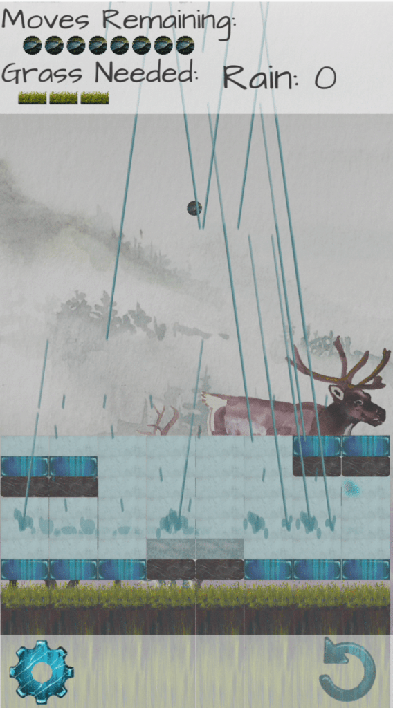 Gameplay from A Caribou’s Tale, where players learn about the greening Arctic and the daily difficulties of a caribou.